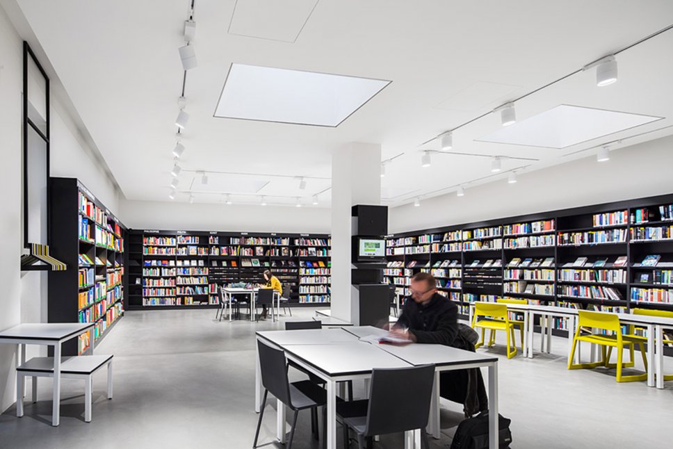Das Goethe-Institut Bratislava erhält durch den Umbau eine neue und moderne Identität. Der Entwurf verbindet das geschriebene und das gesprochene Wort: Die bisher räumlich abgetrennte Bibliothek wird zu den umliegenden Bereichen geöffnet und bekommt zusätzliche Funktionen. Möbel, die bisher in der Raummitte verteilt waren, rücken an die Wände. So wird der Innenbereich frei für Leseplätze und verschiedene Veranstaltungen. Große Oberlichter sorgen für optimales Licht. Multifunktionale, bewegliche Möbel unterstützen das Konzept einer flexiblen Bibliothek; drehbare Bücherregale trennen den Lesesaal von dem Café im Vorbereich. Das bringt zwei Vorteile: Das Café kann auch außerhalb der Bibliotheksöffnungszeiten genutzt werden und der Lesesaal steht für Veranstaltungen zur Verfügung. Das kleine Café ergänzt das Angebot des Goethe-Instituts, spricht neues Publikum an und lädt Menschen zum Lesen und Verweilen ein. Der vor dem Lesesaal gelegene Innenhof erhält einen neuen Bodenbelag, sodass der Außenraum in den Sommermonaten für die Bibliothek, für das Café oder für Veranstaltungen zur Verfügung steht. Das Goethe-Institut erhält durch diese punktuellen, kleinen Eingriffe einen modernen und offenen Charakter.
